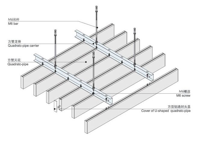 U型方管天花,极具方向性,通透开阔,立体感强烈,棱角线条清晰明朗,新颖独特??傻鹘谧笆慰占涫泳醺叨?,搭配各种不同颜色,悬挂不等高度,引入不同灯光效果,相益辉映,展现明快、飘逸、时尚、谐美的装饰风格。加以防风码安装结构,应用于室外装饰能有效防风,效果更鲜明。通透的安装方法,装拆简易快捷。